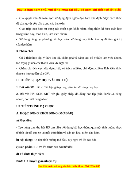 - Sử dụng công cụ, phương tiện học toán: sử dụng máy tính cầm tay để tính giá trị của đạo hàm. 3. Phẩm chất