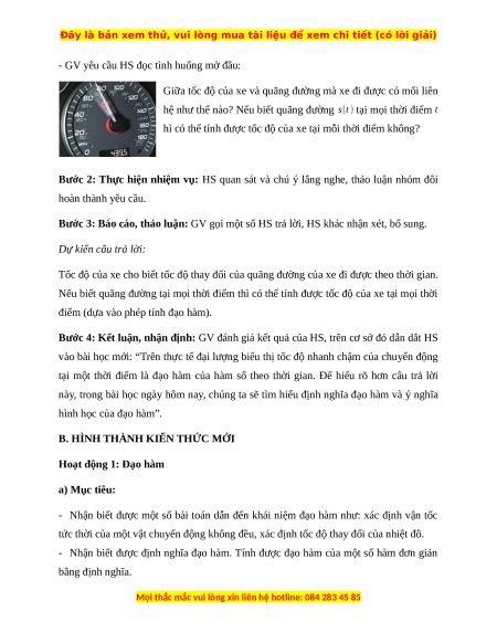 Bước 1: Chuyển giao nhiệm vụ: 1. Đạo hàm