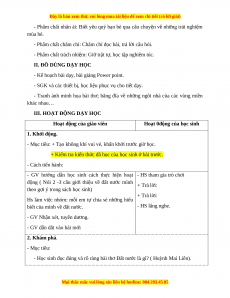 - SGK và các thiết bị, học liệu phục vụ cho tiết dạy.