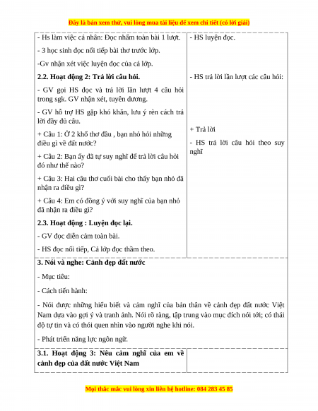 3. Nói và nghe: Cảnh đẹp đất nước - Mục tiêu: - Cách tiến hành: