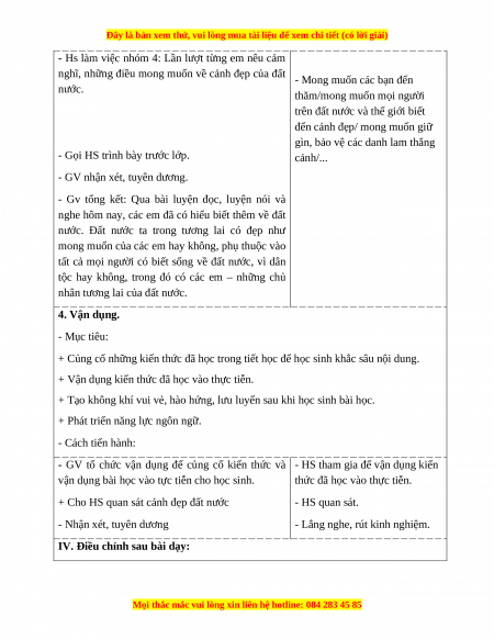 - Nói được những hiểu biết và cảm nghĩ của bản thân về cảnh đẹp đất nước Việt