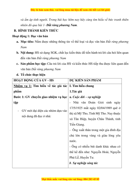 a. Mục tiêu: Nắm được những thông tin về thể loại và đọc văn bản Đất rừng phương Nam