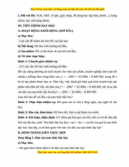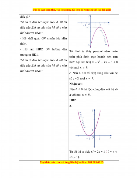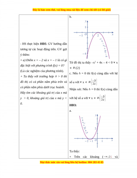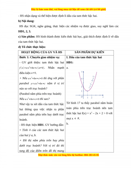 - HS nhận dạng và thể hiện được định lí dấu của tam thức bậc hai. b) Nội dung: