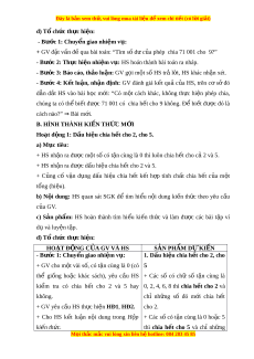 d) Tổ chức thực hi n: ệ HOẠT Đ N Ộ G C A Ủ GV VÀ HS SẢN PHẨM DỰ KI N Ế - Bước 1: Chuy n gi ể ao nhi m ệ v : ụ 1. D u ấ hi u ệ chia h t ế cho 2, cho + GV cho m t ộ vài s , ố có t n ậ cùng là 0 (có 5