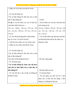+ Liệt kê số đo chiều cao của 10 học sinh từng học sinh).
