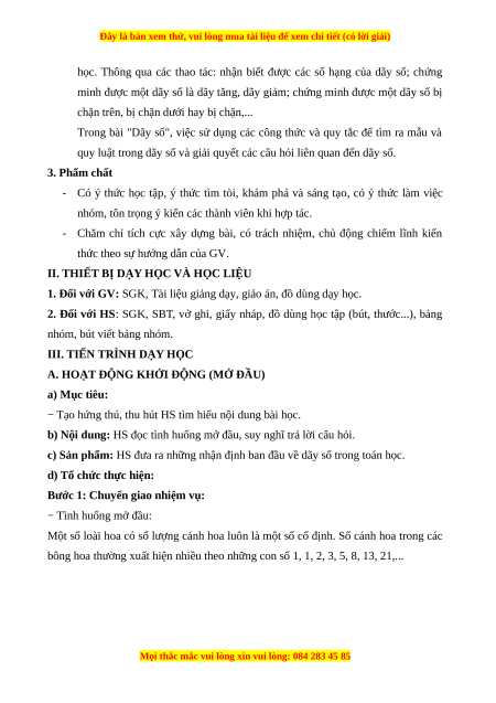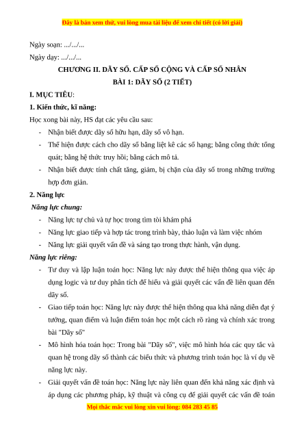 - Nhận biết được tính chất tăng, giảm, bị chặn của dãy số trong những trường hợp đơn giản. 2. Năng lực
