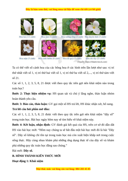bông hoa thường xuất hiện nhiều theo những con số 1, 1, 2, 3, 5, 8, 13, 21,...