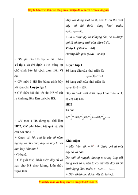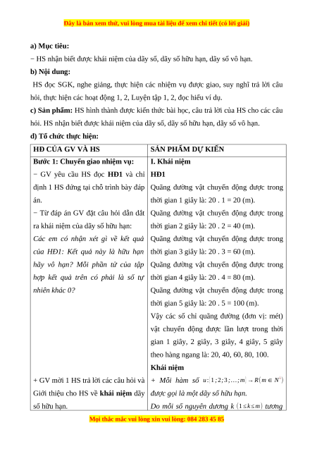 − HS nhận biết được khái niệm của dãy số, dãy số hữu hạn, dãy số vô hạn. b) Nội dung: