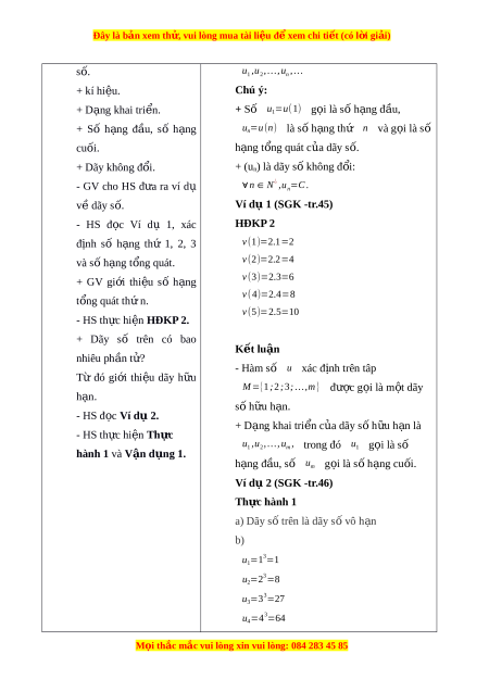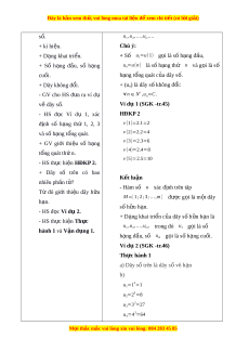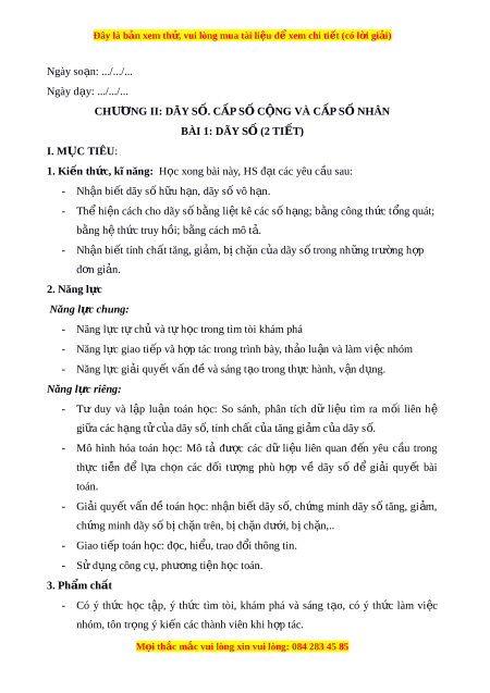 Đây là bản xem th , vu ử i lòng mua tài li u ệ đ xe ể m chi ti t ế (có l i ờ gi i ả ) Ngày so n ạ : .../.../... Ngày d y ạ : .../.../... CHƯƠNG II: DÃY S . Ố C P Ấ S Ố C N Ộ G VÀ C P Ấ S Ố NHÂN BÀI 1: DÃY S Ố (2 TI T) Ế I. MỤC TIÊU: 1. Ki n ế th c