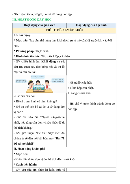 BÀI 71: ĐỀ-TI-MÉT KHỐI (2 tiết)