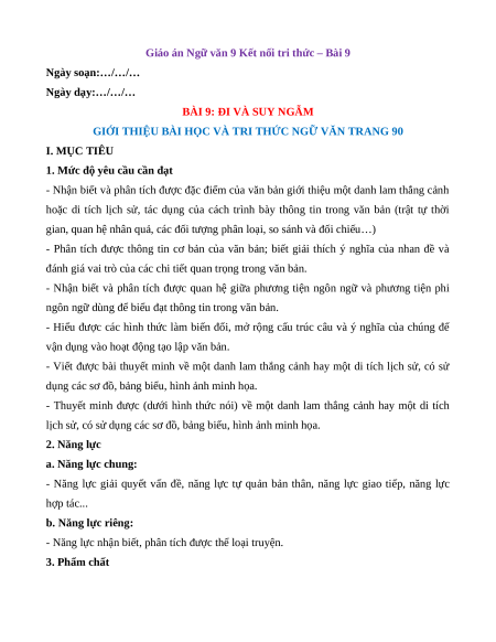Giáo án Ngữ văn 9 Kết nối tri thức – Bài 9