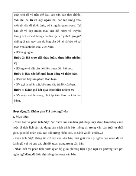 - Nhận biết và phân tích được đặc điểm của văn bản giới thiệu một danh lam thắng cảnh