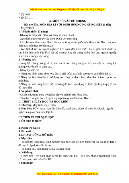 Bài mở đầu. MÔN ĐỊA LÍ VỚI ĐỊNH HƯỚNG NGHỀ NGHIỆP (1 tiết)