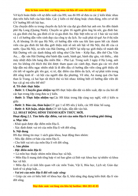Hoạt động 2.1. Tìm hiểu đặc điểm, vai trò của môn Địa lí ở trường phổ thông a. Mục tiêu