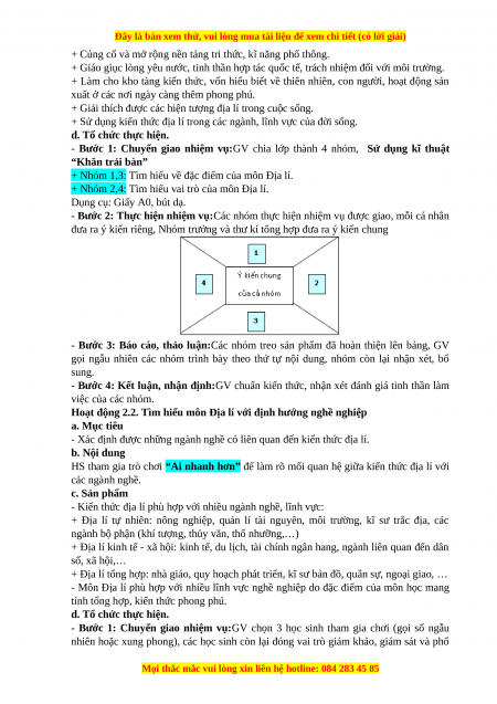 Hoạt động 2.2. Tìm hiểu môn Địa lí với định hướng nghề nghiệp a. Mục tiêu