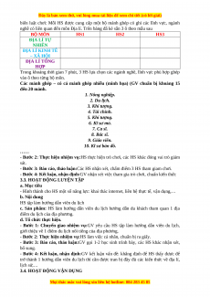 nghề có liên quan đến môn Địa lí. Trên bảng đã kẻ sẵn 3 ô theo mẫu sau BỘ MÔN HS1 HS2 HS3 ĐỊA LÍ TỰ NHIÊN ĐỊA LÍ KINH TÊ – XÃ HỘI ĐỊA LÍ TỔNG HỢP