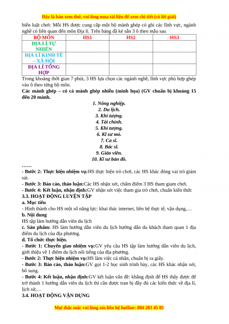 2. Học liệu: SGK, Atlat, bản đồ, biểu đồ, tranh ảnh, video về môn Địa lí, các ngành