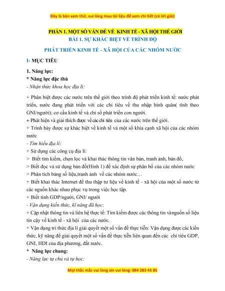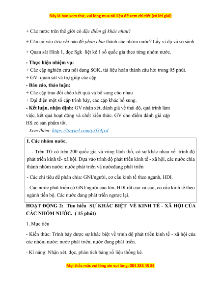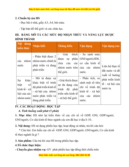 PHÁT TRIỂN KINH TẾ - XÃ HỘI CỦA CÁC NHÓM NƯỚC I- MỤC TIÊU 1. Năng lực: * Năng lực đặc thù
