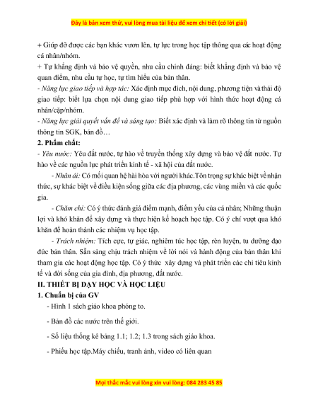 thông tin SGK, bản đồ… 2. Phẩm chất:
