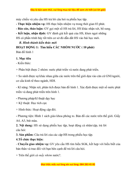 - Phương tiện: Hình 1 sách giáo khoa phóng to. Bản đồ các nước trên thế giới. Giấy A4, A3, bút màu.