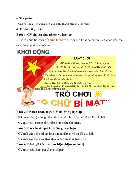 b. Nội dung: GV tổ chức cho HS chơi trò chơi “Ô chữ bí mật”. c. Sản phẩm: