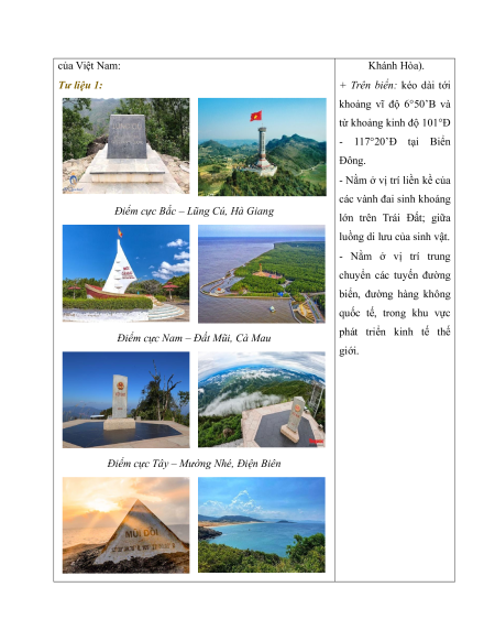 - Phân tích được ảnh hưởng của vị trí địa lí, phạm vi lãnh thổ đến tự nhiên, kinh tế -