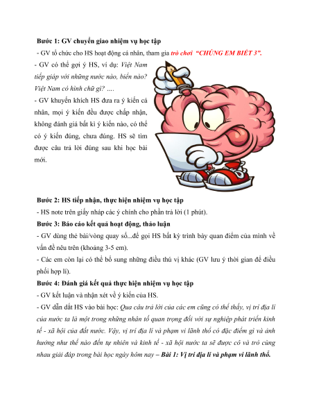 Bước 1: GV chuyển giao nhiệm vụ học tập lãnh thổ