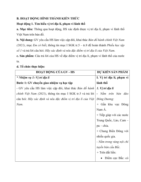 Hoạt động 1. Tìm hiểu vị trí địa lí, phạm vi lãnh thổ
