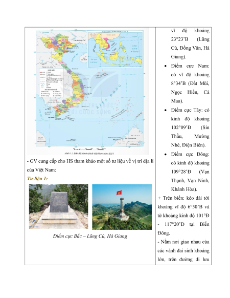 lãnh thổ Việt Nam trên bản đồ; Phân tích được ảnh hưởng của vị trí địa lí, phạm vi