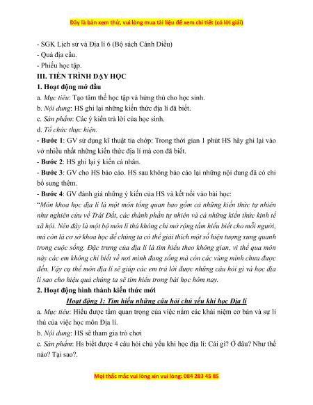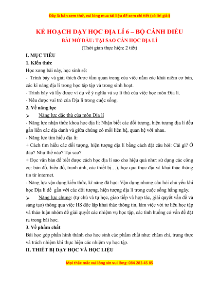 Bộ giáo án Địa lí 6 Cánh diều đã cập nhật đủ Cả năm.