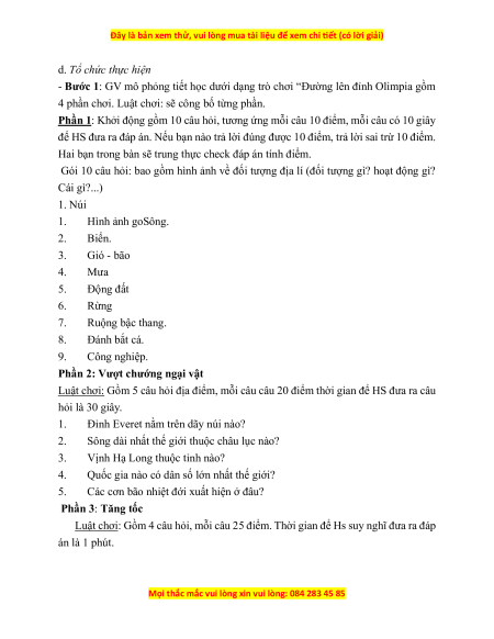 - Bước 1: GV mô phỏng tiết học dưới dạng trò chơi “Đường lên đỉnh Olimpia gồm