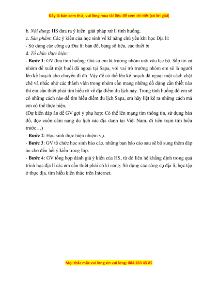 cụ: bản đồ, biểu đồ, tranh ảnh, các thiết bị…), học qua thực địa và khai thác thông tin từ internet.