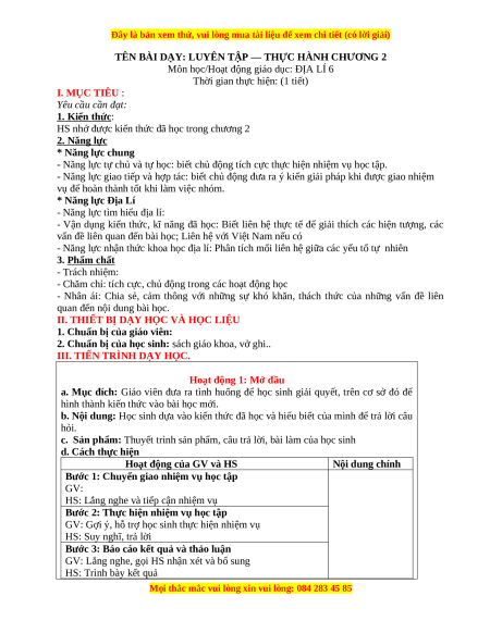 Giáo án Địa lí 6 Kết nối tri thức (2024): Luyện tập - thực hành