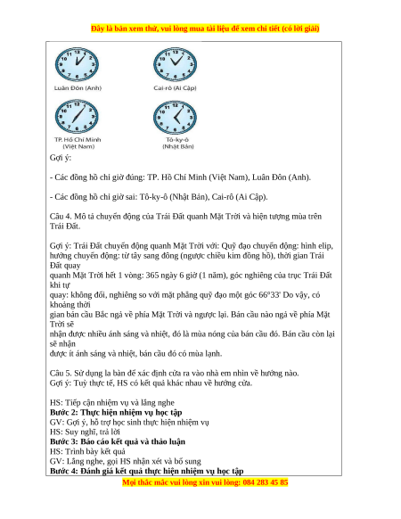 - Các đồng hồ chỉ giờ đúng: TP. Hồ Chí Minh (Việt Nam), Luân Đôn (Anh).