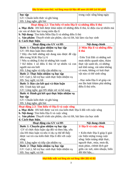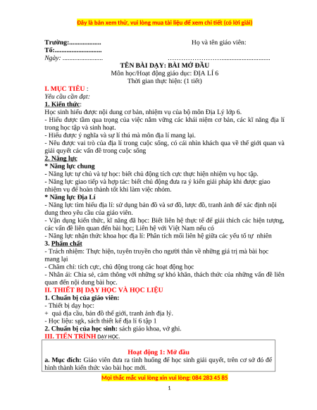 Môn học/Hoạt động giáo dục: ĐỊA LÍ 6
