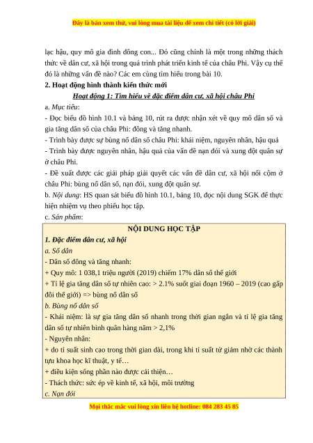 BÀI 10: ĐẶC ĐIỂM DÂN CƯ, XÃ HỘI CHÂU PHI