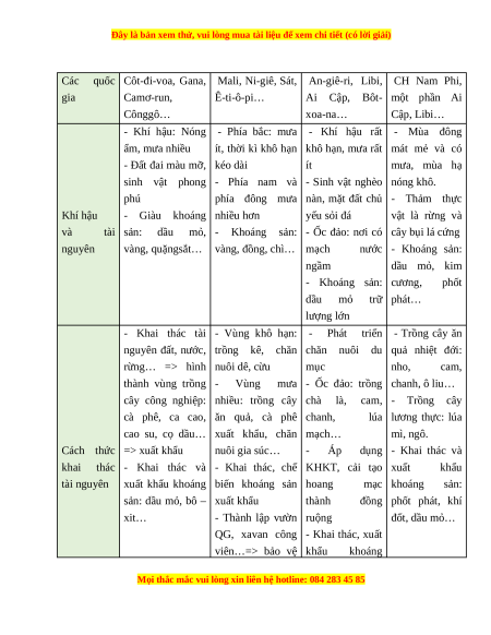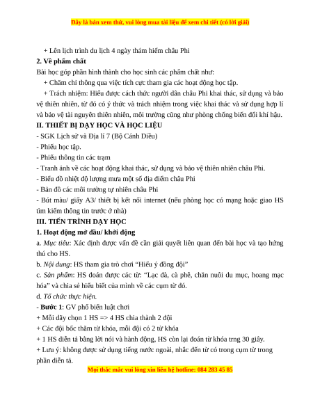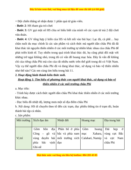 - Trình bày được cách thức người dân châu Phi khai thác thiên nhiên ở các môi trường khác nhau.