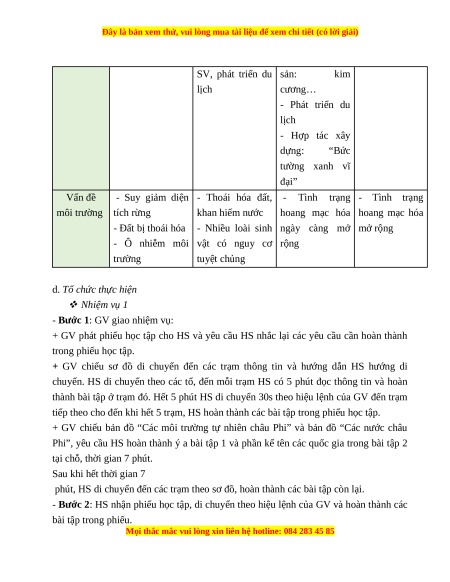 b. Nội dung: HS di chuyển theo tổ đến các trạm, đọc phiếu thông tin ở trạm đó, hoàn thành bài tập cá nhân. c. Sản phẩm: