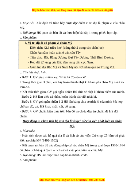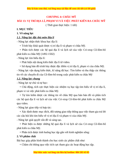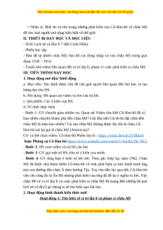 Giáo án Địa lí 7 Bài 13 Cánh diều: Vị trí địa lí, phạm vi và việc phát kiến ra châu Mỹ