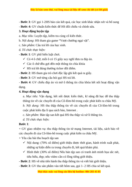 - Bước 1: GV giao nhiệm vụ: “Nhật kí Cô-lôm-bô”