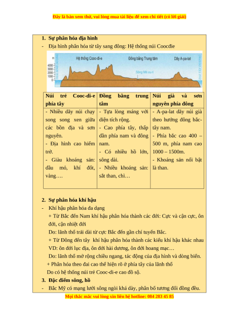 + Sử dụng bản đồ tự nhiên Bắc Mỹ để trình bày được một trong những đặc điểm