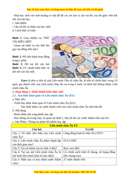 + EU đã thiết lập một thị trường chung và Câu 1: Tổ chức tiền