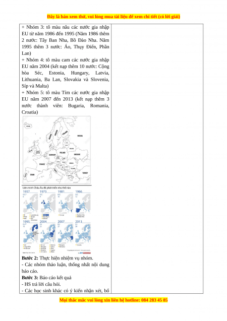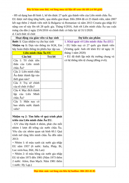 - Xác định được các nước thánh viên của Liên minh châu Âu trên bản đổ.