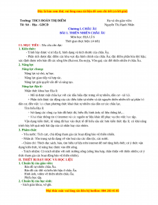 + Mô tả được một châu lục với các dấu hiệu đặc trưng về tự nhiên, dân cư - xã hội.
