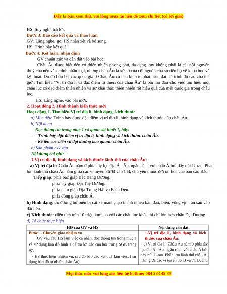 a) Mục tiêu: Trình bày được đặc điểm vị trí địa lí, hình dạng và kích thước của châu Âu. b) Nội dung