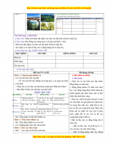 - Phân tích được đặc điểm các khu vực địa hình chính của châu Âu; đặc điểm phân hóa khí hậu;