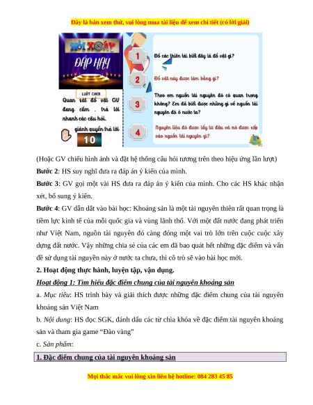 Bước 4: GV dẫn dắt vào bài học: Khoáng sản là một tài nguyên thiên rất quan trọng là