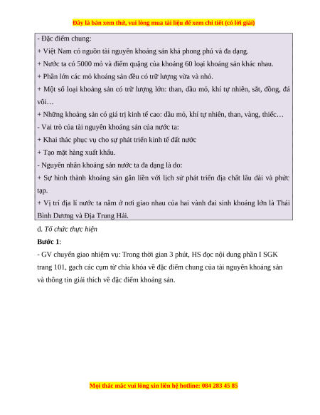 trang 101, gạch các cụm từ chìa khóa về đặc điểm chung của tài nguyên khoáng sản
