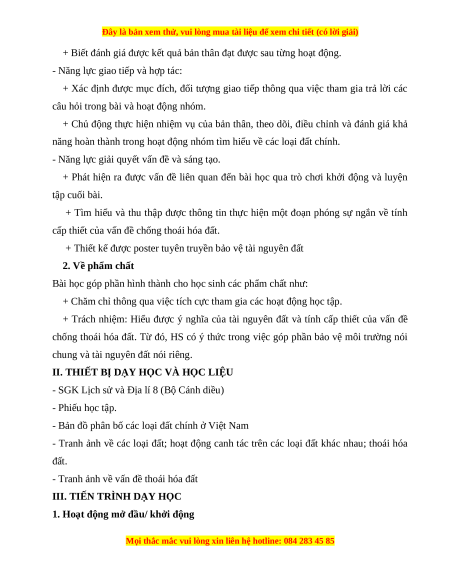 chống thoái hóa đất. Từ đó, HS có ý thức trong việc góp phần bảo vệ môi trường nói