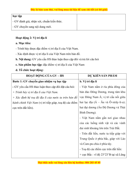 a. Mục tiêu: Trình bày được phạm vi lãnh thổ của Việt Nam.